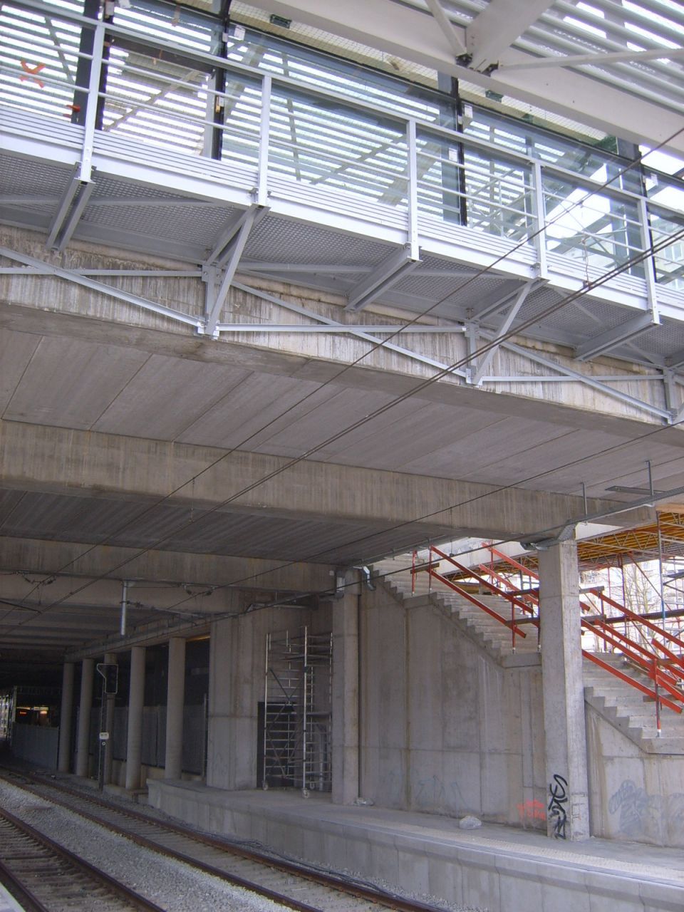 De ramen van het metrostation Brussel-West bevinden zich boven de elektrische stroomkabels. Omdat de ramen regelmatig schoongemaakt worden met water, moest het onderhoudsplatform gebouwd worden met niet geleidende materialen. Het plaform moest omwille van de beperkte bevestigingsmogelijkheden, een lichtgewicht constructie zijn.