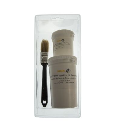 Een kit bestaat uit 200 g hars (LY 564) en 70 g verharder (HY 2954). Beiden zijn in de juiste mengverhouding aanwezig: 1 deel verharder en 3 delen hars. Beide producten kunnen gemengd worden in de pot van het hars. Het product blijft +/- 2 u verwerkbaar na menging. Aan te brengen met penseel of lakrolletje (niet bijgeleverd).